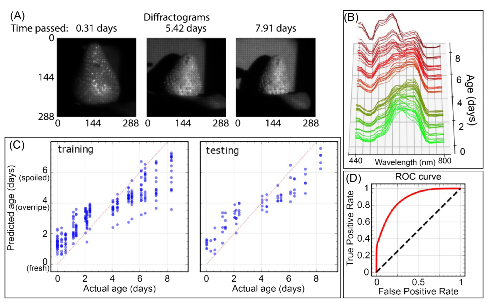 - Outcome: A regression analysis performed on the reconstructed spectra could predict the exact age of the fruit and classify “Fresh” vs. “Spoiled” with high accuracy before visible mold appeared. This proves the reconstructed spectra has sufficient fidelity for predictive regression models. For more details, see our Optica 2025 paper.